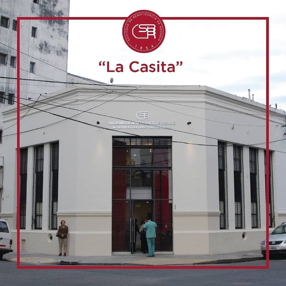 "La Casita" es una obra que inauguramos el 28 de septiembre de 2012. Es un hogar hecho especialmente para alojar a pacientes ambulatorios y familiares de enfermos que no residen en Rosario y tienen internaciones de manera transitoria.